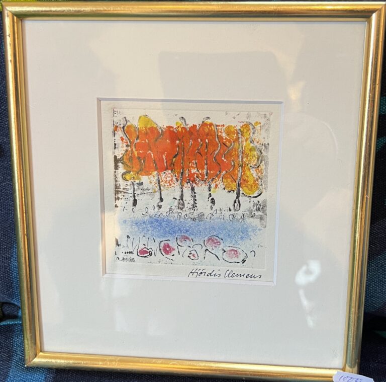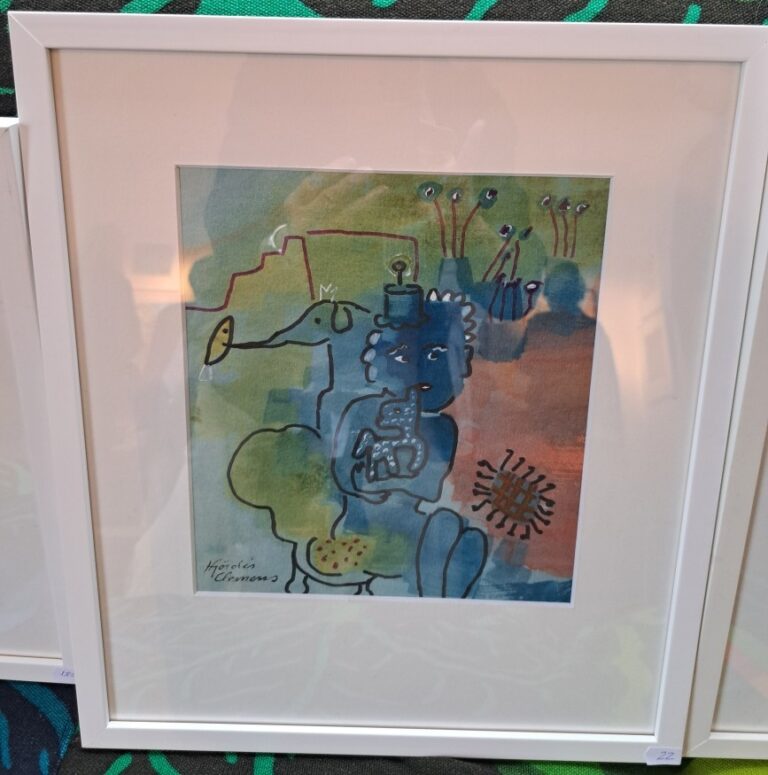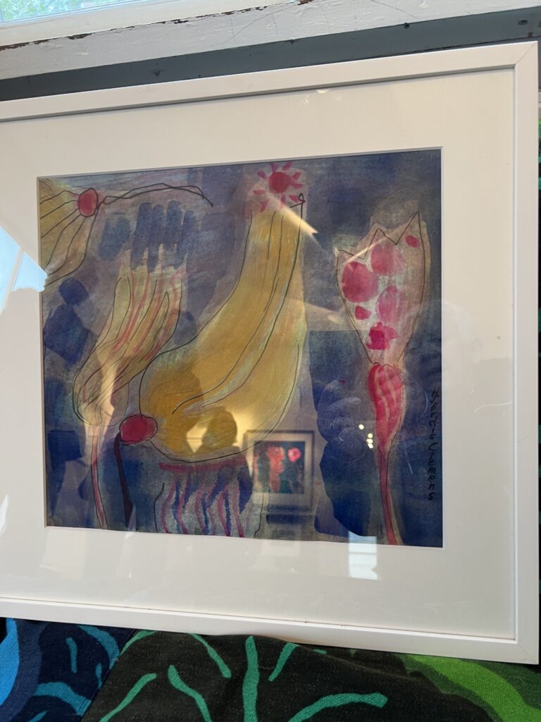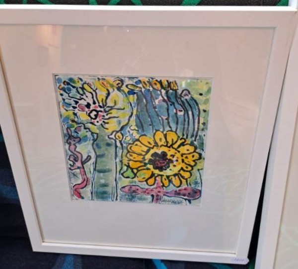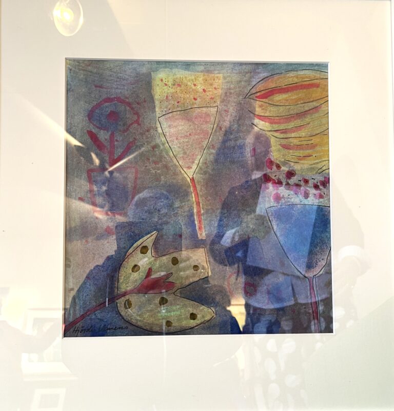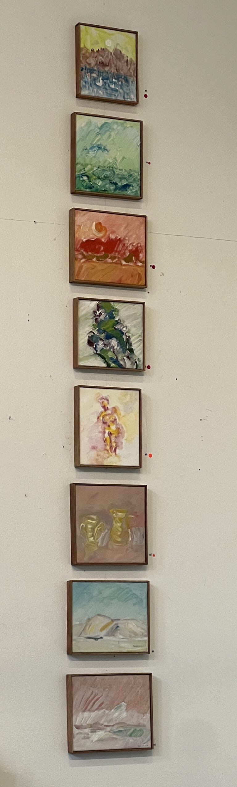 Hjördis bjöd på inspirerande tavlor i sitt charmiga hus med 100 år på nacken. Här gjordes inköp till konstföreningens utlottning vid årsmötet mars 2026.