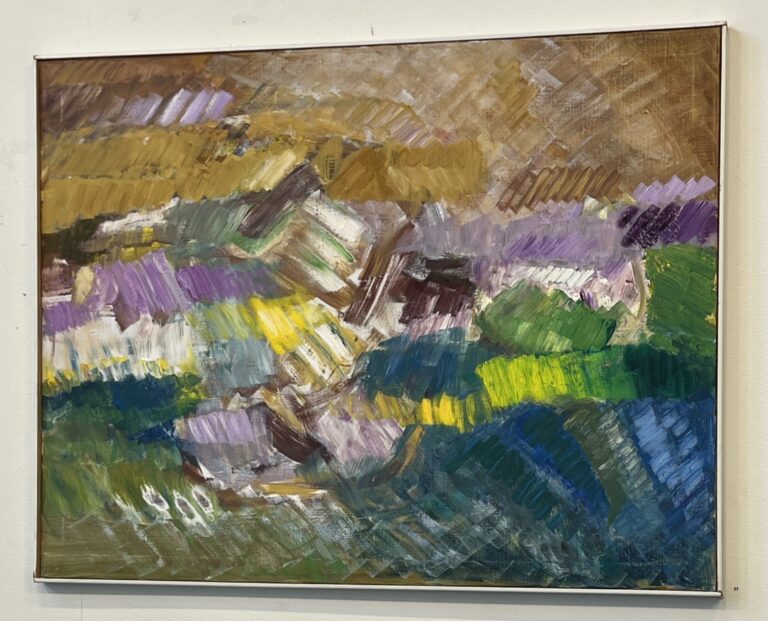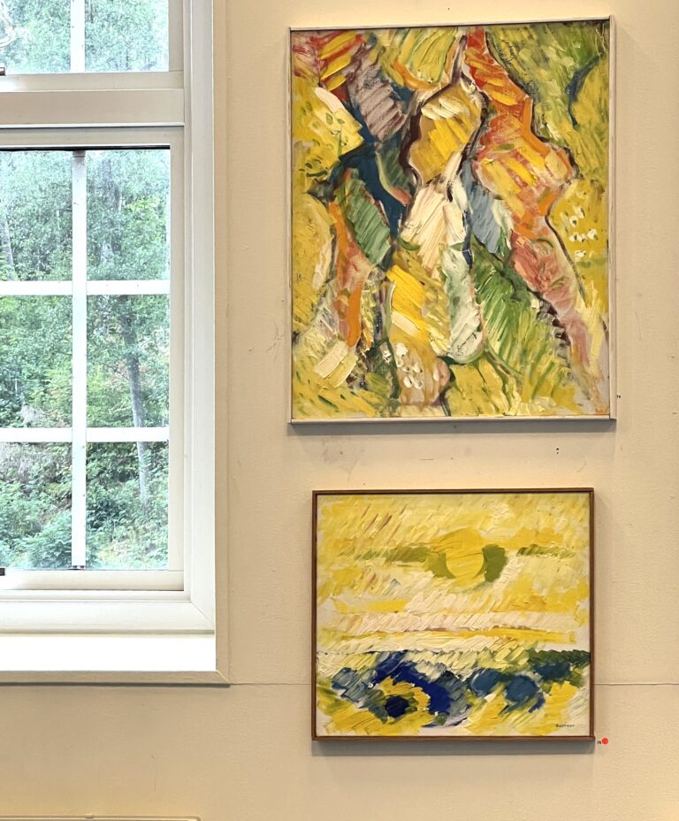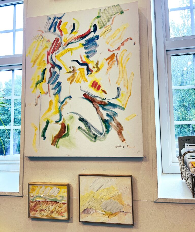 Vägg i vägg gick vi in i Dalslands Center som hade en intressant retrospektiv utställning med verk av George Suttner. Titel: ”Färg-Form-Rytm”